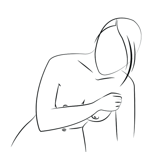 Lean forward and support your right breast with your right hand.